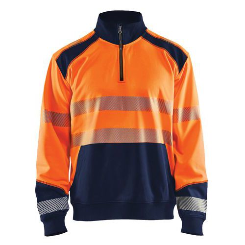 Sweatshirt halve rits High Vis 3556 - geel/marineblauw