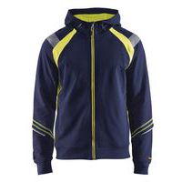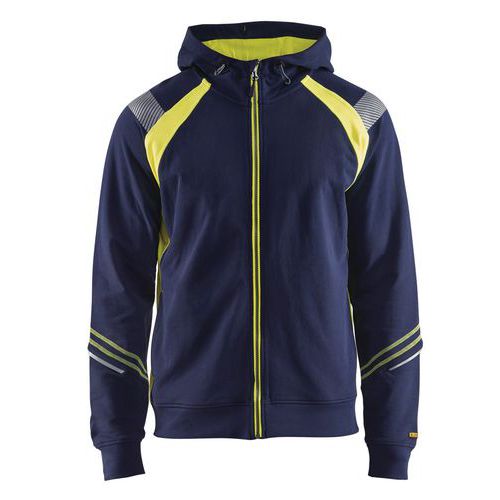 Sweatshirt hooded hele rits Hight Vis 3433 - marineblauw/fluo geel