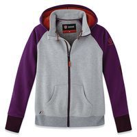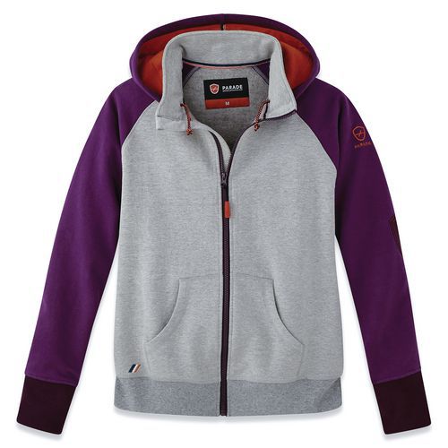 Het sweatshirt met rits en hoge kraag en capuchon, voor een casual look: tweekleurig sweatshirt in gemêleerd grijs met hoge capuchon en kraag, verstevigingen bij de ellebogen, beschermende Parade van 100% nylon.