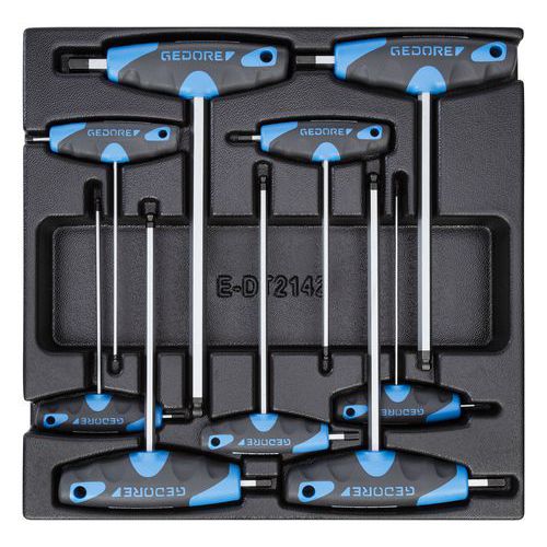 | Productnaam | T-greep-stiftsleutelset in 2/3 ES module 1500 ES-DT 2142, Type nr.: 1543474, Aantal stuks: 9, Gewicht: 1337 g |