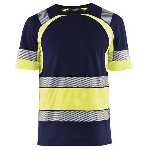 T-shirt High Vis UV korte mouw ronde hals 3421 - marineblauw/fluo geel