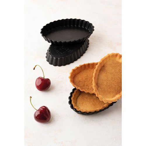 | Productnaam | Taartbakvorm langwerpig, geribbeld Exoglass, Hoogte: 1.8 cm, Lengte: 117 mm, Breedte: 70 mm, Kleur: Zwart |
