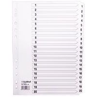 | Productnaam | Tabblad 15 st bedrukt 160g geplastificeerd tabs 1 tot 20 A4, Aantal tabs: 20, Kleur: Wit |