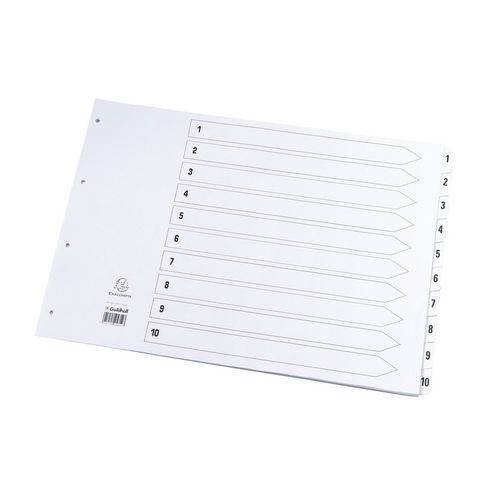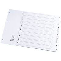 | Productnaam | Tabblad bedrukt karton 160g geplastificeerd tabs 1 tot 10 A3, Aantal tabs: 5, Kleur: Wit |