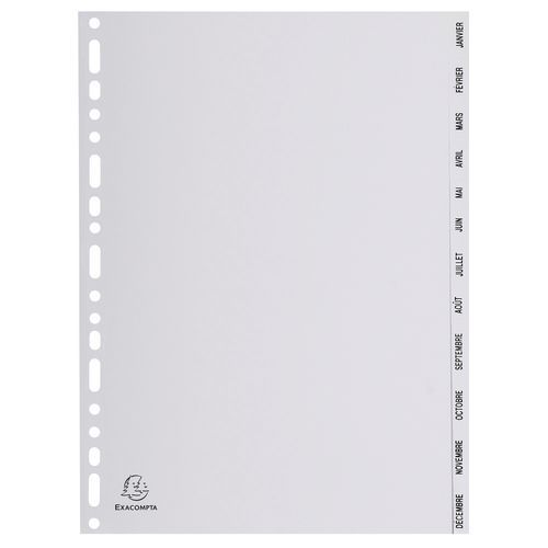 | Productnaam | Tabblad bedrukt tabs grijs pp 12 tabs jan/dec A4 Exacompta, Aantal tabs: 12, Kleur: Grijs |
