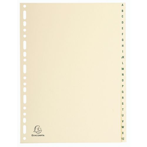 | Productnaam | Tabblad karton 155g 24 tabs a tot z A4 Exacompta, Aantal tabs: 24, Kleur: Beige |