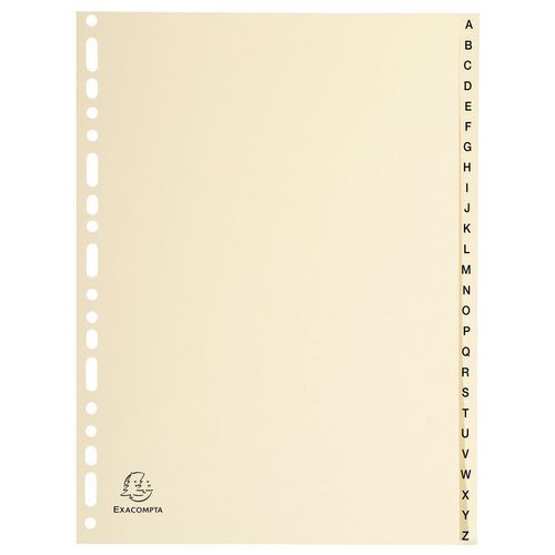 | Productnaam | Tabblad karton 155g 26 tabs a tot z A4 Exacompta, Aantal tabs: 26, Kleur: Beige |
