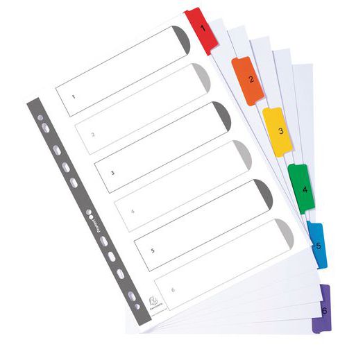 | Productnaam | Tabblad numeriek Exacompta, Aantal tabs: 31, Kleur: Diverse, Voor formaat: 210 x 297 mm (A4) |
