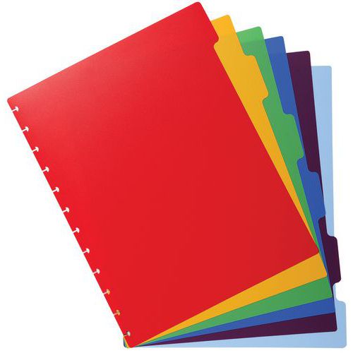 Tabbladen voor showalbum met ringen- gekleurde PP - 10 tabs - A4. Deze stevige multicolor tabbladen worden gebruikt met de showalbums met ringen. De tabbladen kunnen het klassement in verschillende compartimenten verdelen of verdelen de presentatie van de documenten.