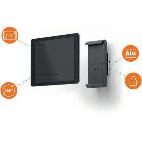 | Productnaam | Tabletstandaard voor wand, Max. belasting: 1 kg, Dikte: 50 mm, Materiaal: Aluminium |