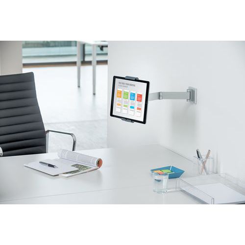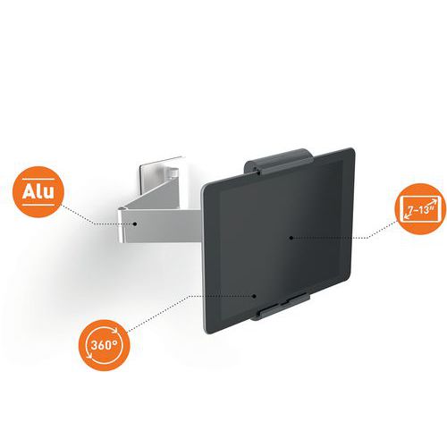 | Productnaam | Tabletstandaard voor wand met knikarm, Max. belasting: 1 kg, Dikte: 95 mm, Materiaal: Aluminium |