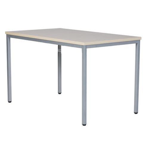 Tafel uit de Mandy serie zijn stabiele en duurzame tafels die goed passen in de lunchroom, bekleed met licht esdoornmelamine en het stabiele onderstel is uitgevoerd in zilvergelakte vierkante buis.
