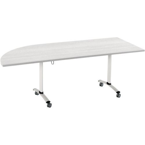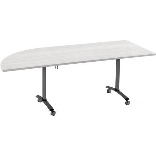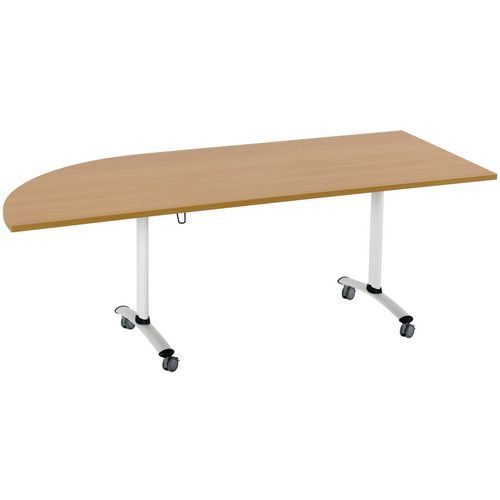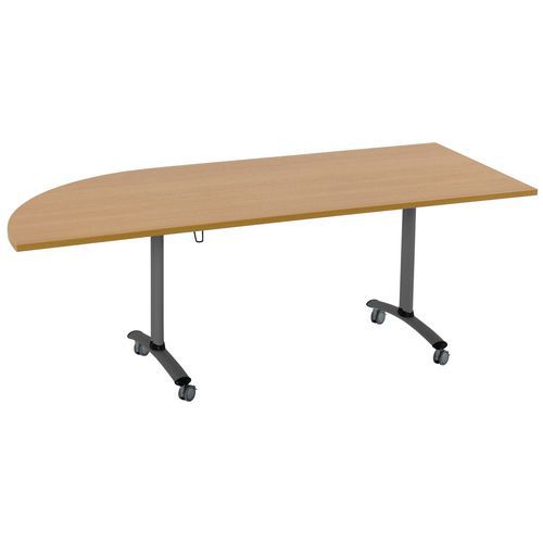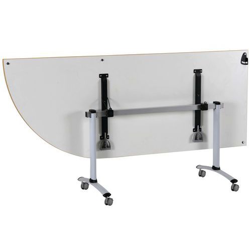 Klapvergadertafel Axe, hoek links, met draaiplateau voor optimale ruimtebesparing bij het opbergen. Automatische vergrendeling van de plaat in de werkstand (horizontaal) en verticale positie (opslag). Systeem voor snelle verbinding tussen de bladen met draaischroef. Voorzien van 4 wielen van Ø 75, met rem. Klapvergadertafel Axe, hoek links, met draaiplateau voor optimale ruimtebesparing bij het opbergen. Automatische vergrendeling van de plaat in de werkstand (horizontaal) en verticale positie (opslag). Systeem voor snelle verbinding tussen de bladen met draaischroef. Uitgerust met 4 wielen van Ø 75 mm, met rem.