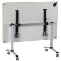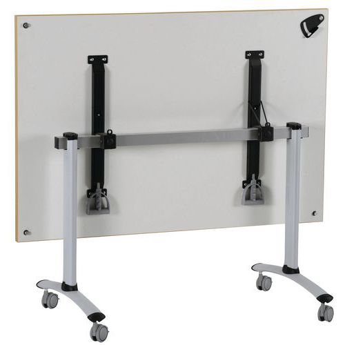 Vierkante klapvergadertafel Axe met draaiplateau voor optimale ruimtebesparing bij het opbergen. Automatische vergrendeling van de plaat in de werkstand (horizontaal) en verticale positie (opslag). Systeem voor snelle verbinding tussen de bladen met draaischroef. Voorzien van 4 wielen van Ø 75, met rem. Vierkante klapvergadertafel Axe met draaiplateau voor optimale ruimtebesparing bij het opbergen. Automatische vergrendeling van de plaat in de werkstand (horizontaal) en verticale positie (opslag). Systeem voor snelle verbinding tussen de bladen met draaischroef. Uitgerust met 4 wielen van Ø 75 mm, met rem. Randen van ABS, dikte 2 mm. Metalen onderstel met epoxylak. Geproduceerd in Frankrijk. Geleverd met ongemonteerde poten.