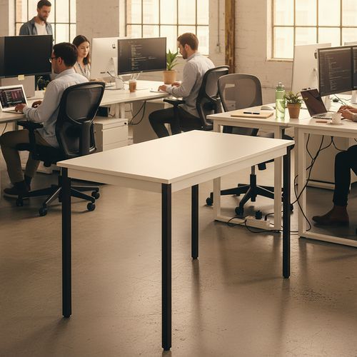 Veelzijdige tafel Manutan - Breedte 140 cm - Manutan Expert Wat opvalt is de metalen constructie van buizen en praktische stootranden. Zet de tafel waterpas neer waar u maar wilt, dankzij de stelpoten.