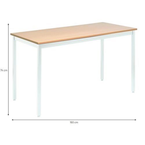 Tafel veelzijdig, Type onderstel: 4 poten, Hoogte: 74 cm, Breedte: 160 cm, Vorm: Rechthoek