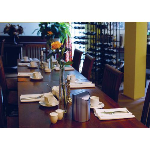 | Productnaam | Tafelafvalbakje, Totale inhoud: 1.5 L, Opening: Met pedaal, Materiaal: Metaal, Materiaal: Roestvrij staal |