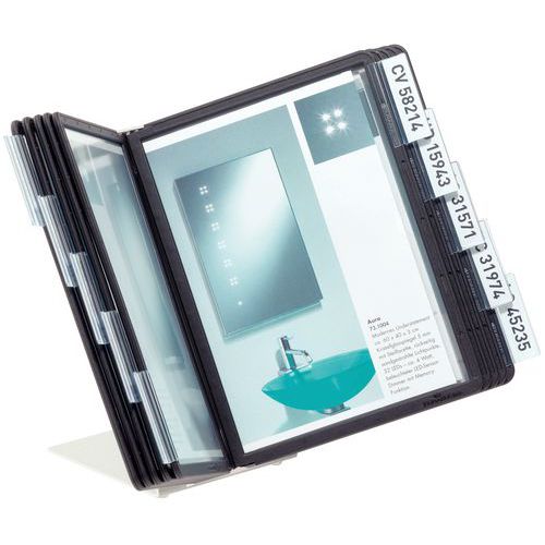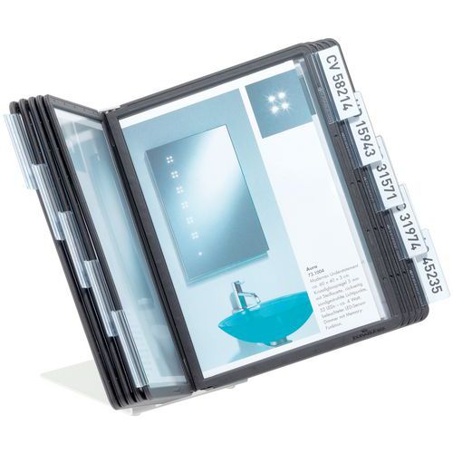 | Productnaam | Tafellessenaar Vario, Voor formaat: A5, Steun materiaal: Staal, Type: Tafellessenaar, Aantal hoesjes: 10 |