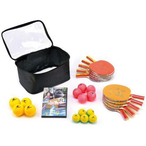 - Pack bestaat uit 4 bats, 8 ballen (4 witte en 4 oranje) en een opbergtas voor de 4 bats.