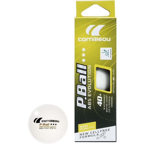 | Productnaam | Tafeltennisbal P-ball evolution 40+ – set van 3, Gebruiksniveau: Wedstrijd, Kleur: Wit, Materiaal: PVC |