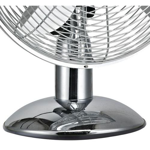 | Productnaam | Tafelventilator verchroomd metaal 25 cm, Luchtverplaatsing: 416 dm³/s, Functie oscillatie: ja, Hoogte: 40 cm |