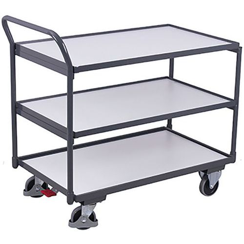Tafelwagen ESD met 3 laadvlakken en duwbeugel Tafelwagen ESD met 3 laadvlakken en duwbeugel