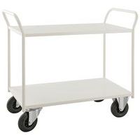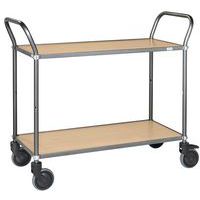 - Tafelwagen met 2 laadvlakken en duwbeugel extreem robuust dankzij de mechanisch gelaste constructie met innovatief L-profiel.