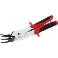 - Licht en ergonomisch gereedschap voor behoedzaam vastgrijpen en schroeven van parallelle werkstukken. Kan twee complete steeksleutelsets vervangen, metrisch en inch (respectievelijk 0 – 72 mm en 0 – 2,3/4). De verbeterde vorm van de licht gebogen handgreep en de uitgebreide contactzone met de hand maken een comfortabele bediening bij continu gebruik mogelijk. Soepele montage van aansluitingen op oppervlakken met delicate schroefverbinding (bijv. verchroomde wartels). Snelle instelling met drukknop en schuifmechanisme: na één keer op de knop te hebben gedrukt en de klem open te hebben gehouden, kan de breedte van de opening van de parallelle klauwen per werkstuk worden aangepast. Veilige aangrijping door op de poten te drukken in elk van de 26 instelposities! Perfect voor het vastdraaien en losdraaien van schroefverbindingen en voor het vasthouden, buigen, klemmen en aanbrengen van verschillende onderdelen. Afstelling van de sleutellengte door een schuifmechanisme en parallelle geleide
