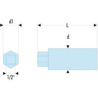 A MAX. [MM]: 16, D [MM]: 34, D X L [MM]: 34 X 75, D1 [MM]: 27, L [MM]: 75, 6-KANT [MM]: 27, CAPACITEIT [MM]: 16, [G]: 340, [KG]: 0,340