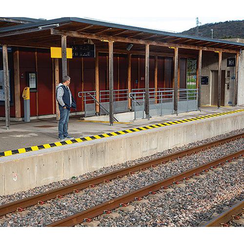 Tegel met ribbels is een multifunctionele oplossing, kan binnen en buiten worden gebruikt. De twee kleuren bieden een natuurlijk contrast voor een betere zichtbaarheid voor slechtzienden. Waarschuwingsstrip om blinden en slechtzienden te waarschuwen voor de gevaren die zij op hun route kunnen ondervinden. Installeren met polyurethaanlijm of binnen met dubbelzijdige tape. Gemaakt in de EU Toegankelijk voor mindervaliden