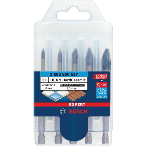 Tegelborenset EXPERT 3-delig HEX-9 HardCeramic, Aantal stuks: 5, Gebruik: Boren, Materiaal: Staal