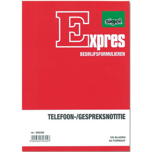 | Productnaam | Telefoon-gespreknotitieblok Sigel Expres A5, Aantal pagina's: 100 |