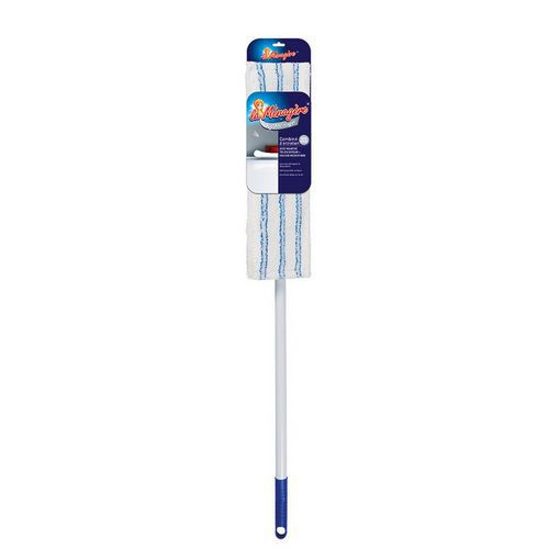 | Productnaam | Telescopische bezem met microvezelhoes, Kleur: Blauw/grijs, Lengtes: 44 cm, Breedte: 14 cm |