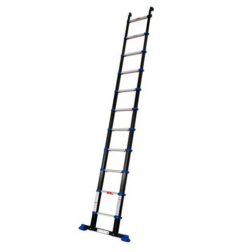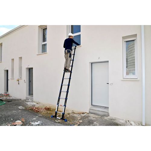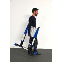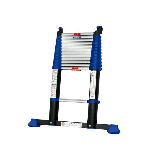 Ergonomische telescopische ladder, compact, ontgrendelbaar met één hand. Per sport uitschuifbaar. Voorzien van een pneumatisch dempsysteem met vingerbescherming voor inklappen. Compact formaat voor eenvoudiger transporteren en opbergen. Brede stabilisatiestang met antislipvoeten. Aluminium antislipsporten. Wandvoeten met antisliplaag en oppervlaktebescherming. Klantgarantie : 2 jaar Max. belasting (kg) : 150