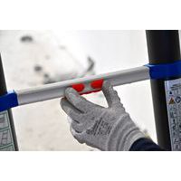 Ergonomische telescopische ladder, compact, ontgrendelbaar met één hand. Per sport uitschuifbaar. Voorzien van een pneumatisch dempsysteem met vingerbescherming voor inklappen. Compact formaat voor eenvoudiger transporteren en opbergen. Brede stabilisatiestang met antislipvoeten. Aluminium antislipsporten. Wandvoeten met antisliplaag en oppervlaktebescherming.