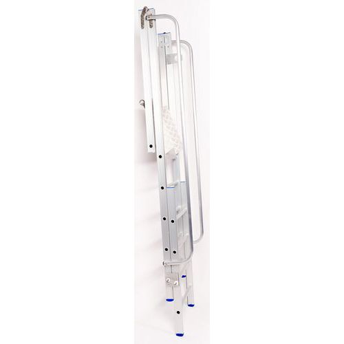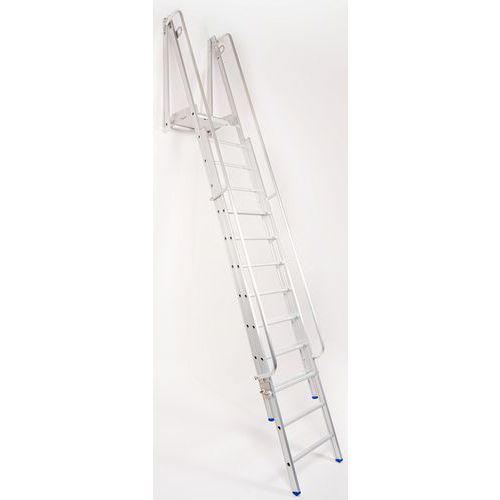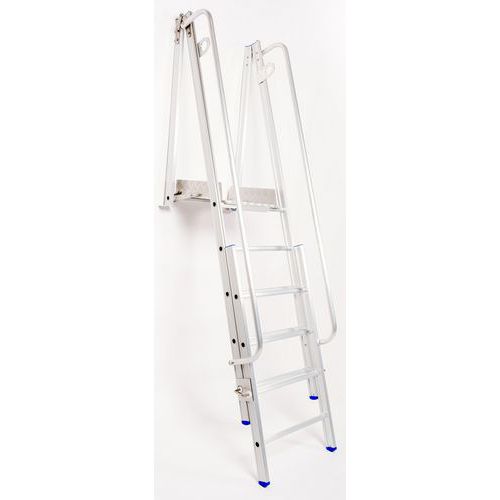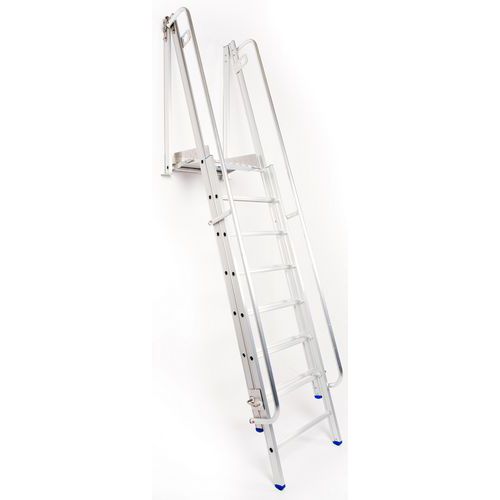 Toegangsladder met reling, telescopische voet, inklapbare treden en aluminium constructie