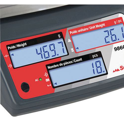 - Uitstekend af te lezen dankzij 3 schermen: bruto of netto gewicht, gewicht per stuk en aantal stuks.
