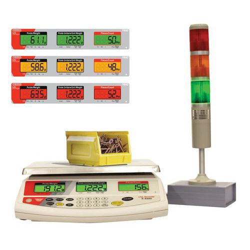 - 3 kleurenlampjes op het statief laten gemakkelijk en snel zien of het gewicht conform de vooraf ingestelde tolerantiedrempel is.