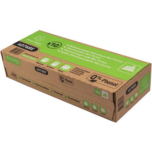 | Productnaam | Thermorol, Gramsgewicht: 48 g/m², Lengte vel: 76 m, Rol lengte: 80 mm, Rol Ø: 72 mm, Kleur: Wit |