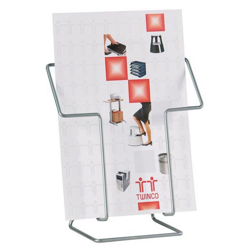 | Productnaam | Tijdschriftenstaander, Materiaal: Aluminium, Voor formaat: A4, Kleur: Grijs, Type: Presenteerrek |