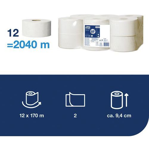 Toiletpapier Mini en Maxi Jumbo Tork Advanced, Aantal vouwen: 2, Lengte rol: 1700 cm, Kleur: Wit Toiletpapier Mini en Maxi Jumbo Tork Advanced, Aantal vouwen: 2, Lengte rol: 1700 cm, Kleur: Wit