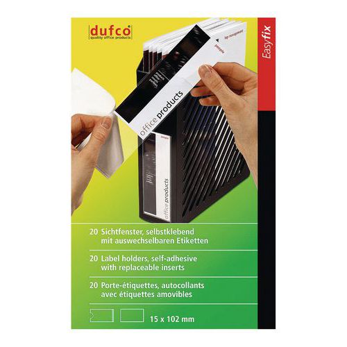 Zelfklevende etikethouder met verwisselbare inschuifstrook