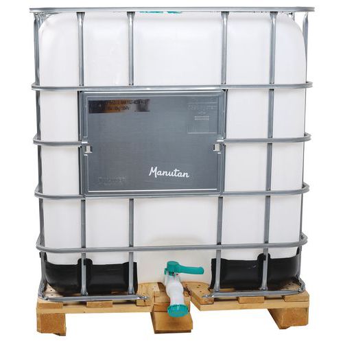 Transportbak 1000 l Unicube, gehomologeerd + Houten pallet, Totale inhoud: 1000 L, Totale hoogte: 1175 mm