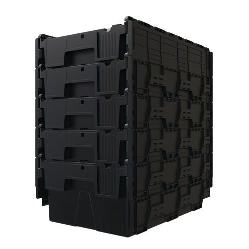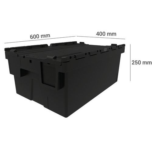 De transportbak van gerecycled kunststof is in elkaar stapelbaar, wat aanzienlijke ruimtewinst oplevert en hem optimaal maakt. Deze Euronorm-bak, is palletiseerbaar en zorgt voor een grote stabiliteit bij het stapelen. Bestand tegen verschillende temperatuurschommelingen. Het deksel is praktisch: het is verwijderbaar en neerklapbaar. Beveiligde sluiting mogelijk met verzegelingen.