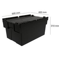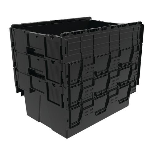 De transportbak van gerecycled kunststof is in elkaar stapelbaar, wat aanzienlijke ruimtewinst oplevert en hem optimaal maakt. Deze Euronorm-bak, is palletiseerbaar en zorgt voor een grote stabiliteit bij het stapelen. Bestand tegen verschillende temperatuurschommelingen. Het deksel is praktisch: het is verwijderbaar en neerklapbaar. Beveiligde sluiting mogelijk met verzegelingen.
