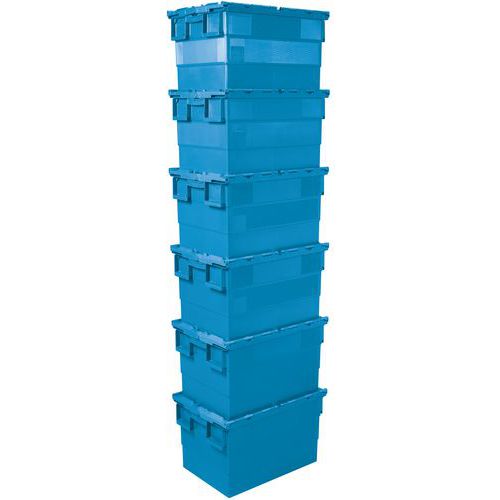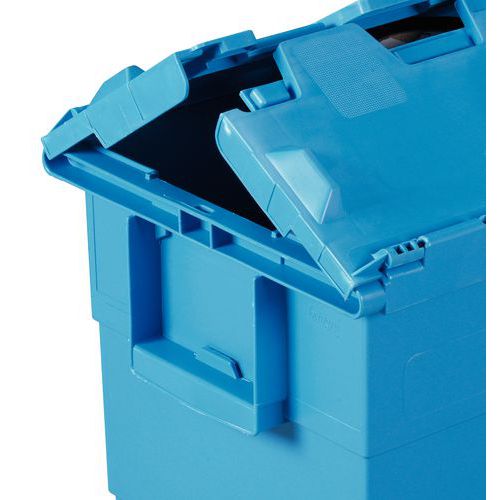 Transportbak Integra® 65% in elkaar stapelbaar, voor ruimtewinst. Veiligheid gegarandeerd door het verzegelbare deksel. Etikethouder op de zijkant voor een betere zichtbaarheid.