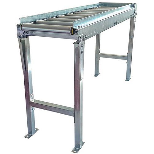 - Transportband met stalen rollen voor het transport en verzameling van elk object met een vlakke bodem of voorzien van verstevigingslatten.