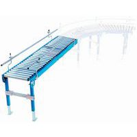 Transportband met pvc rollen TRS met frame van staal 20/10e. Bekleding van epoxylak. Laadvermogen tot 80 kg/m. Rol pvc met een diameter van 50 mm met kogellager. Eenvoudig onderhoud van rollen met as met veer, geen vet. Werkt op basis van zwaartekracht met een helling van 5 tot 6% via verstelling van de steunvoeten. Klantgarantie : 3 jaar