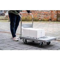 Met een draagvermogen van 330 kg kan deze plateauwagen eenvoudig zware ladingen aan en biedt hij u een betrouwbare oplossing voor uw transportbehoeften.