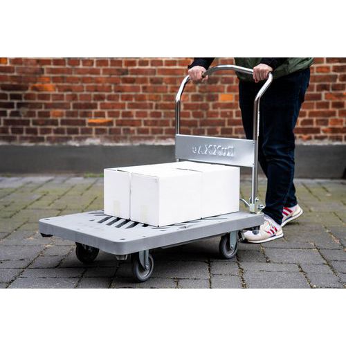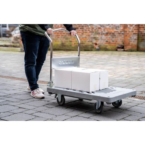 Plateauwagen Dandy RuXXac met rem en neerklapbare duwstang.